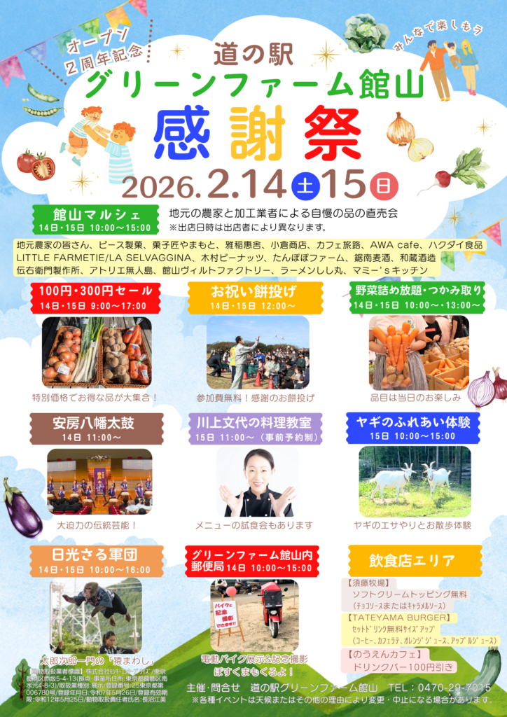 オープン2周年記念!道の駅 グリーンファーム館山“感謝祭”を開催します🎵