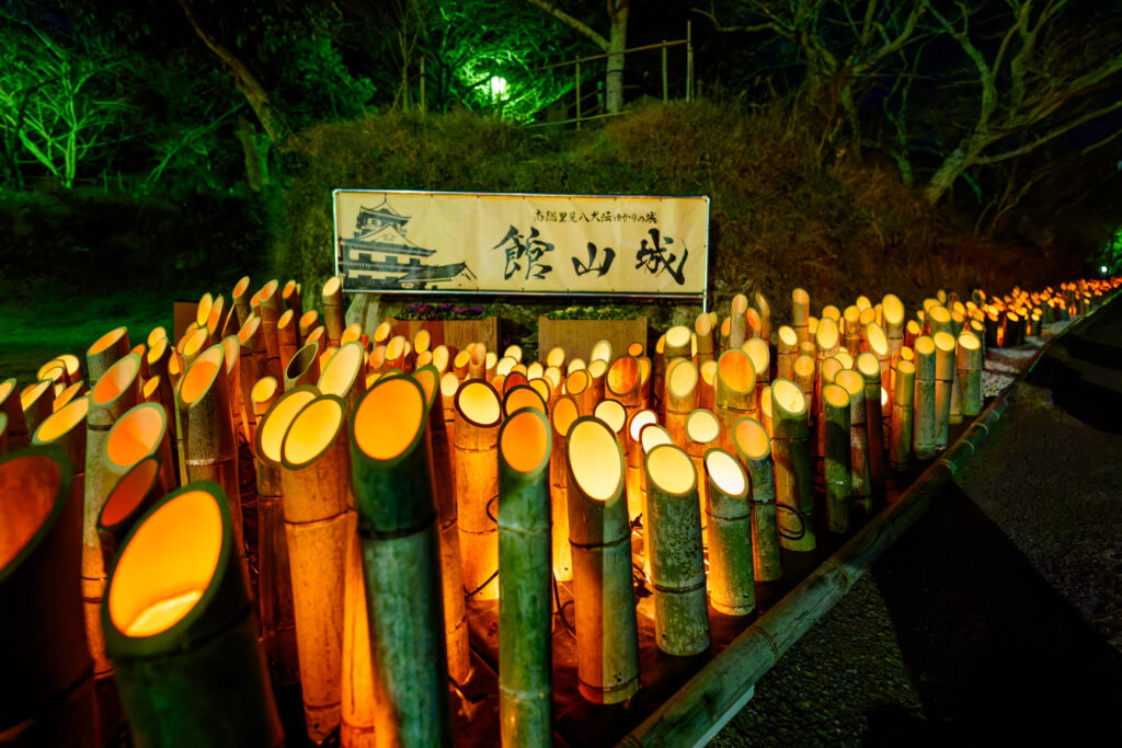 カテゴリー 観光ニュース 竹あかりの径 開催中 投稿者 作成者: 直美間宮 投稿日 2026.02.08 ~冬の里見のあかりみち~城山公園 777本の竹灯籠が、館山城への道を照らしてくれます。幻想的な空間、時を超えて里見ロマンを感じる夜の散策を。 2月1日(日)~3月20日(金) 点灯時間:18:00~21:00 主催・問合せ里見のまちづくり実行委員会 Return ← 「列車で行く外房神社巡り エキタグスタンプラリー」開催中!3/8まで