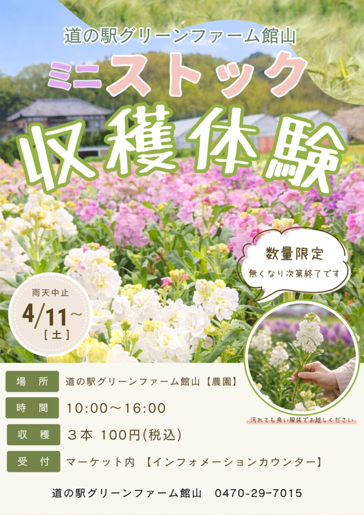 道の駅グリーンファーム館山にて『ミニストック収穫体験』を行います!