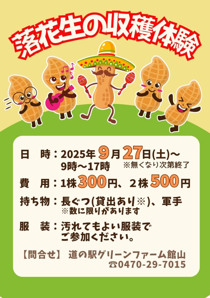 場所:木村ピーナッツ犬石圃場 (館山市犬石172-1)※詳細は下のチラシをご覧ください