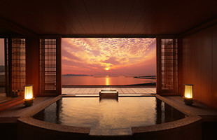 館山湾の大パノラマの絶景が独占できる「貸切露天風呂」。 潮騒とせせらぎを感じながら癒しの時間を満喫してください。
